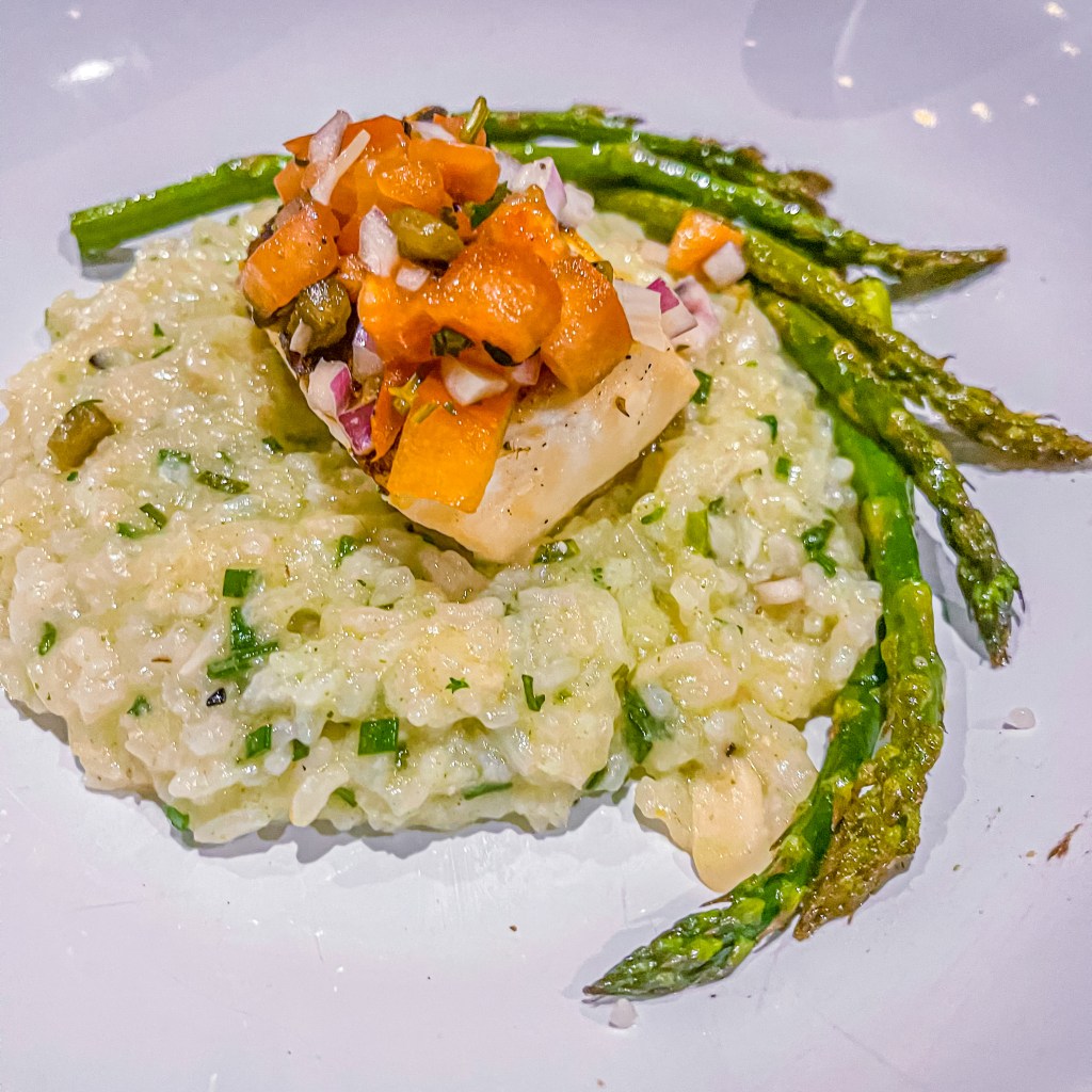Then came dinner: quite possibly the best halibut in Tacoma. Perfectly cooked, tender, and paired with silky chive risotto and roasted asparagus that didn’t just play backup—they held their own beautifully. Every bite was balanced, flavorful, and honestly… kind of unforgettable.